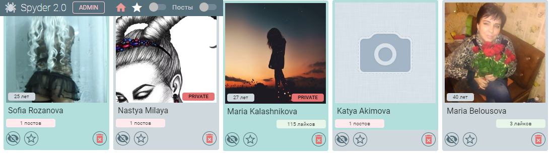 Джания Нутфулина — эту запомним, опишу позже. Подсвечивается анкета зеленым, а значит, что в первый раз что-то где-то написала/лайкнула.