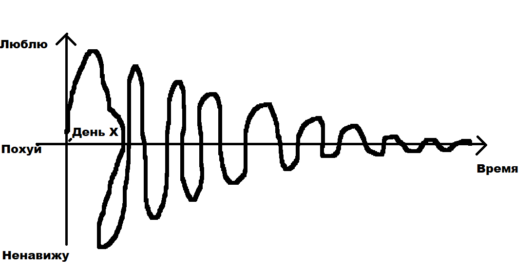 Каждый раз прогоняя, через себя, всё то что случилось — график выше будет “плавнеть”. Чем дальше в лес, тем больше тебе будет открываться, на что-то — будет забиваться хуй, какие-то вещи будут казаться неважными, а какие то покажутся открытием. Когда-то, при упоминании ЕЕ имени — ничего кроме “Хех” и не вылезет из твоего рта. Но это всё будет потом.
